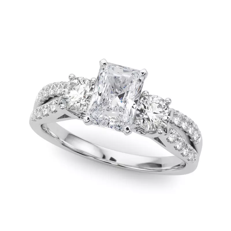 Rosella Three Stone Engagement Ring With 1 Carat radiant Lab Diamond