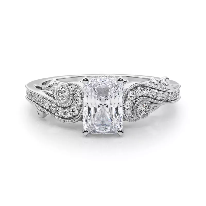 Carmel Vintage Inspired Engagement Ring With 2 Carat radiant Lab Diamond