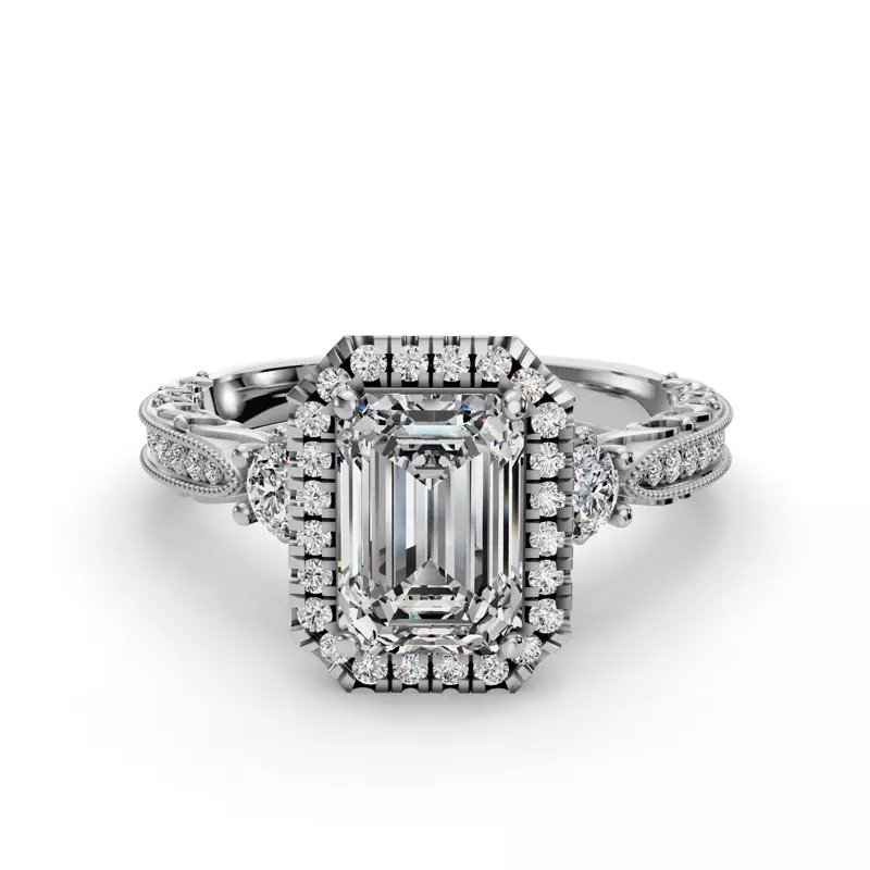 Winter Halo Engagement Ring With 2 Carat emerald Lab Diamond