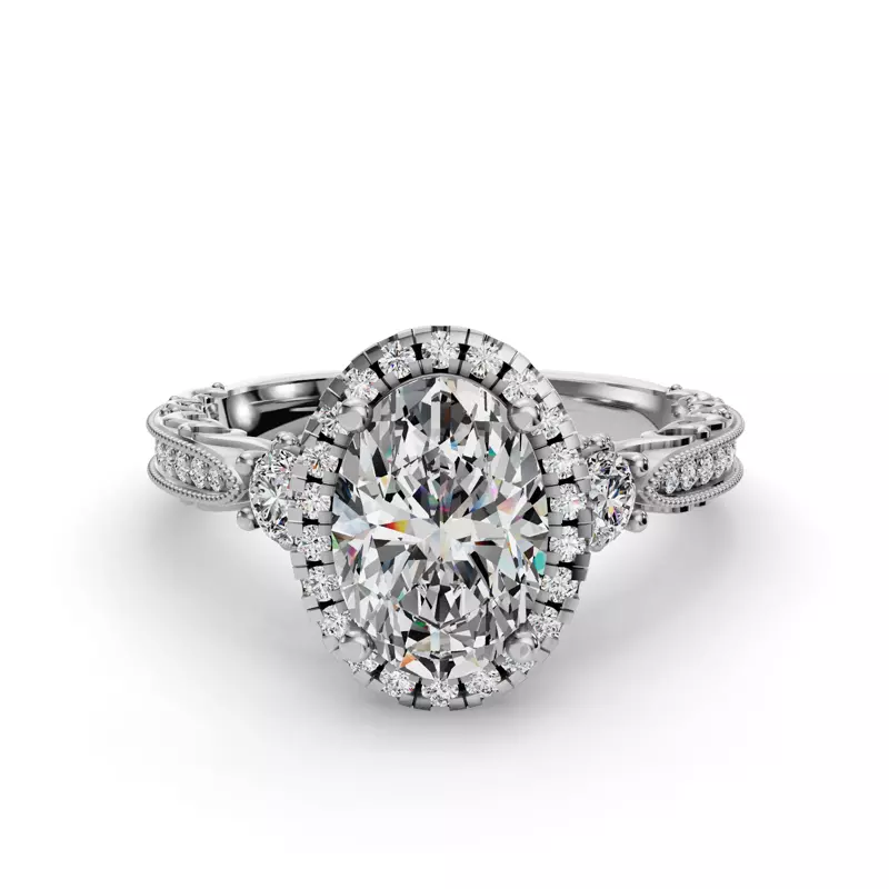 Winter Halo Engagement Ring With 2 Carat oval Lab Diamond