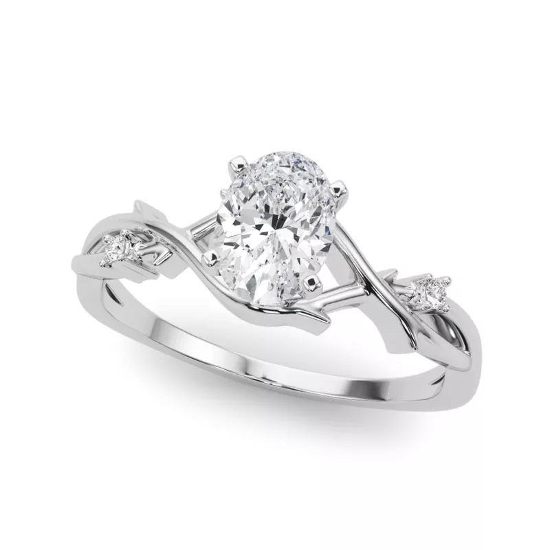 Vine Nature Inspired Engagement Ring With 1 Carat oval Lab Diamond