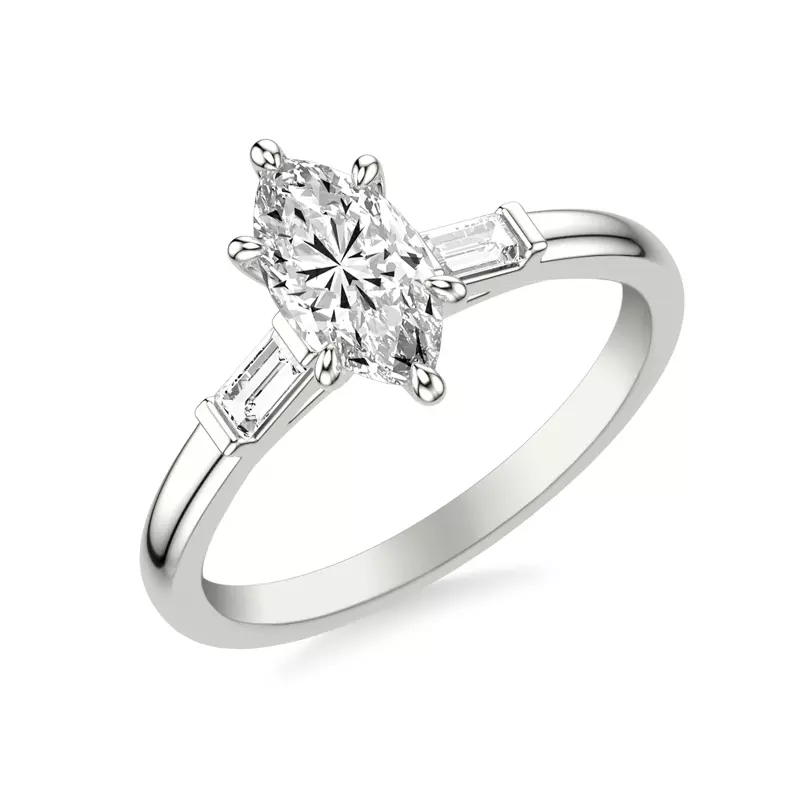 Luisa Classic 3-Stone Engagement Ring With 2 Carat marquise Lab Diamond