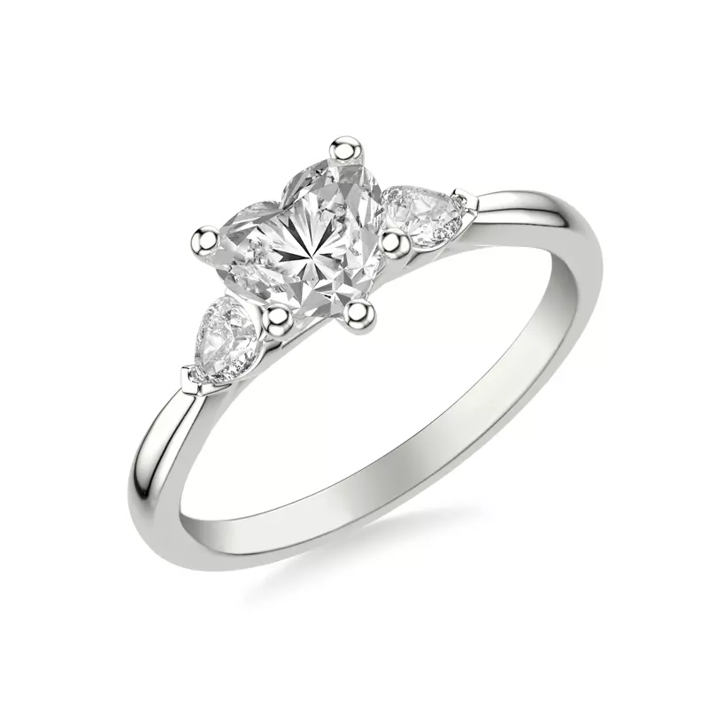 Jacie Three Stone Engagement Ring With 3 Carat heart Lab Diamond