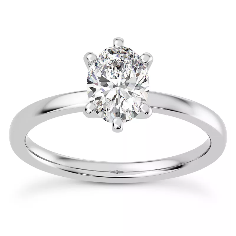 Boda Six Prong 1.5mm Comfort Fit Engagement Ring With 2 Carat oval Lab Diamond