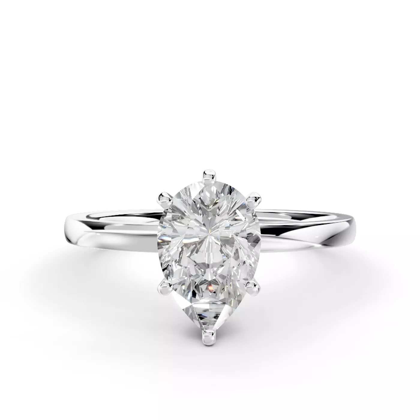 Boda Six Prong 1.5mm Comfort Fit Engagement Ring With 3 Carat pear Lab Diamond