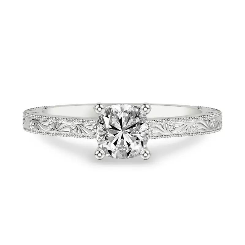 Islay Hand-Engraved Solitaire Engagement Ring With 2 Carat cushion Lab Diamond