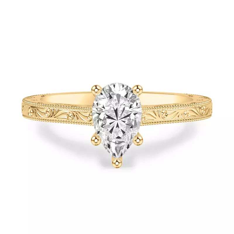 Islay Hand-Engraved Solitaire Engagement Ring With 1 Carat pear Lab Diamond