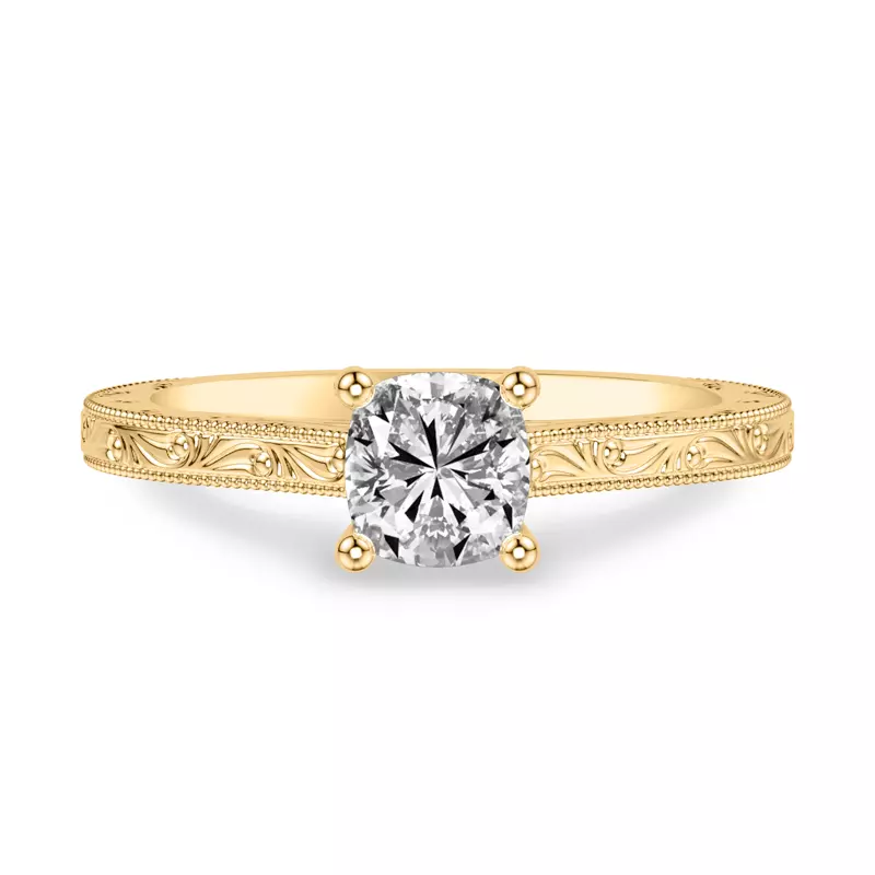 Islay Hand-Engraved Solitaire Engagement Ring With 2 Carat cushion Lab Diamond