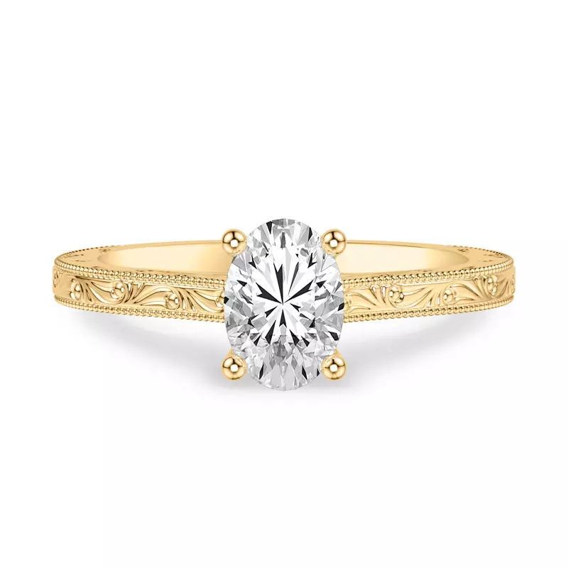 Islay Hand-Engraved Solitaire Engagement Ring With 3 Carat oval Lab Diamond