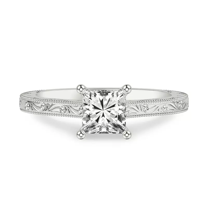 Islay Hand-Engraved Solitaire Engagement Ring With 3 Carat princess Lab Diamond