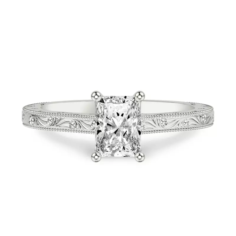 Islay Hand-Engraved Solitaire Engagement Ring With 3 Carat radiant Lab Diamond