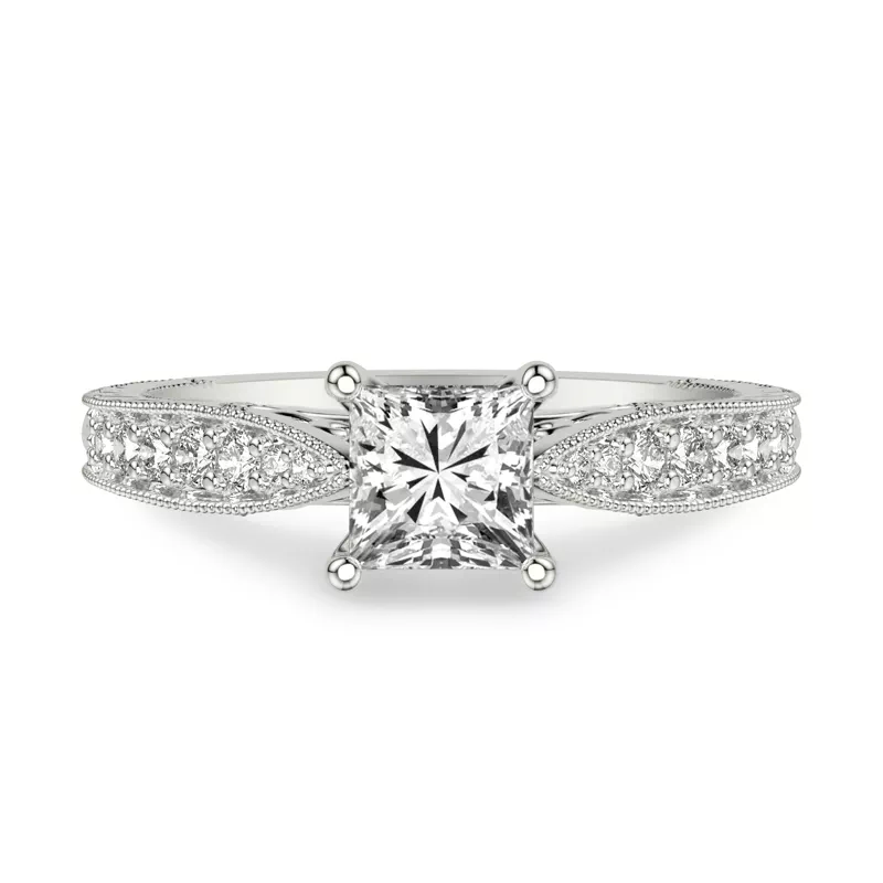 Kensie Hand-Engraved Engagement Ring With 2 Carat princess Lab Diamond