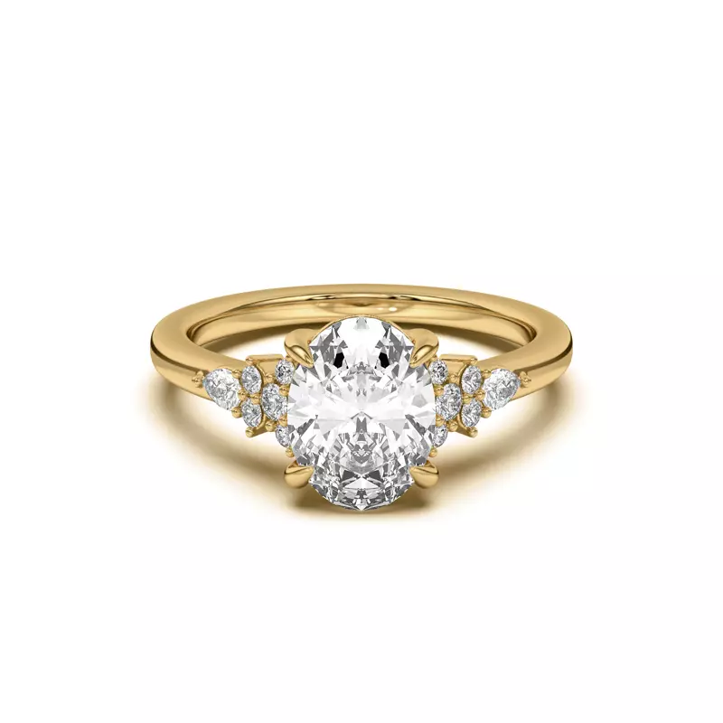 Belinda Pear and Round Diamond Cluster Engagement Ring With 2 Carat oval Lab Diamond