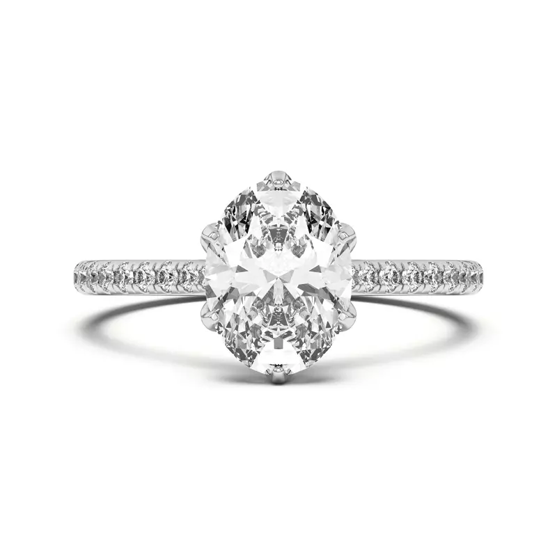 Marigold Tulip Inspired 6 Prong Engagement Ring With 3 Carat oval Lab Diamond