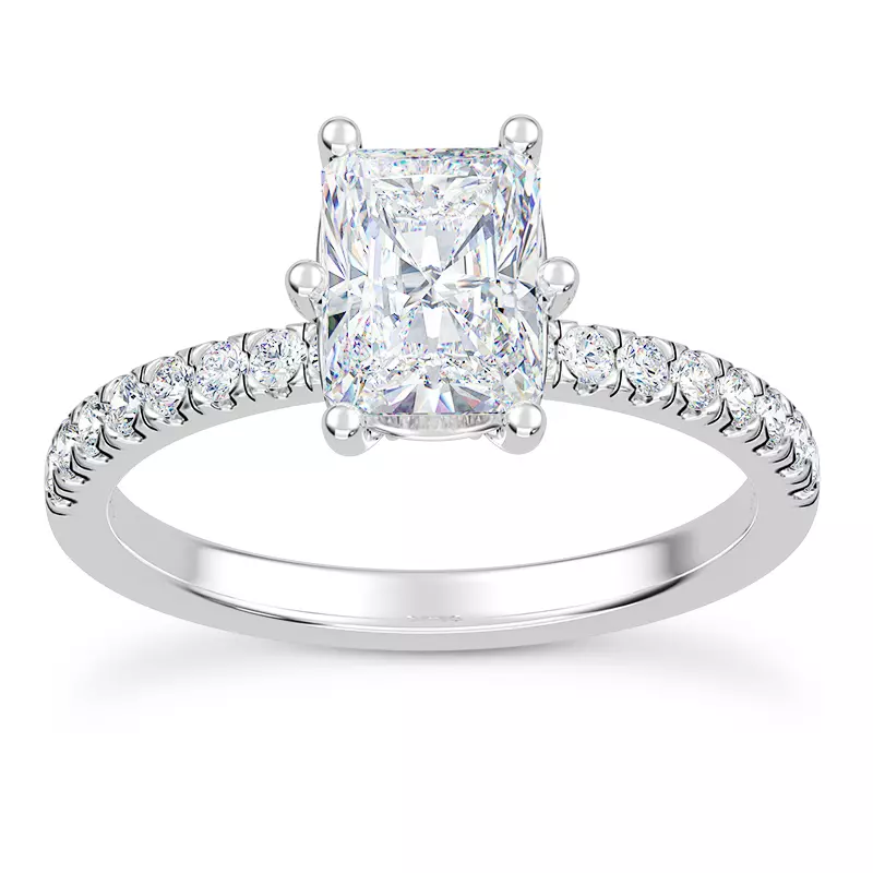 Alka Curved Hidden Halo Engagement Ring With 3 Carat radiant Lab Diamond