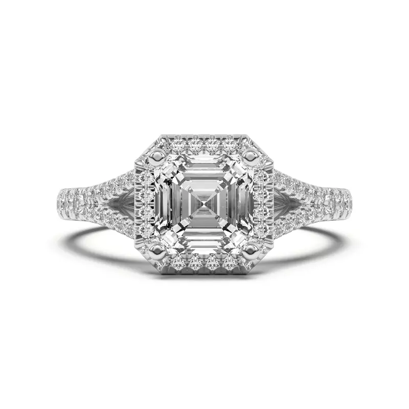 Clarissa Split Shank Halo Engagement Ring With 3.01 Carat asscher Lab Diamond
