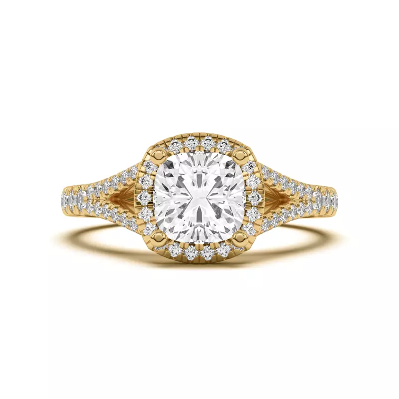 Clarissa Split Shank Halo Engagement Ring With 3 Carat cushion Lab Diamond