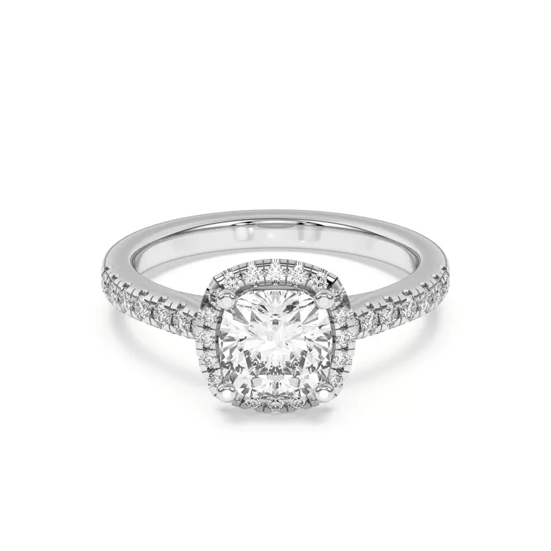 Estelle Classic Pavé Cathedral Halo Engagement Ring With 2 Carat cushion Lab Diamond