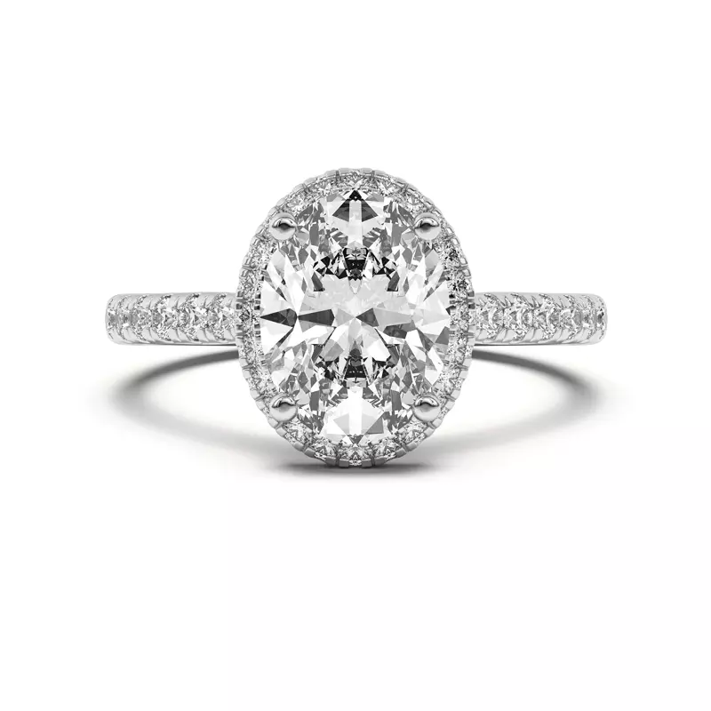 Estelle Classic Pavé Cathedral Halo Engagement Ring With 3 Carat oval Lab Diamond