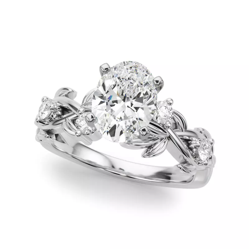 Flamenco Twisted Vine And Leaf Engagement Ring With 2 Carat oval Lab Diamond