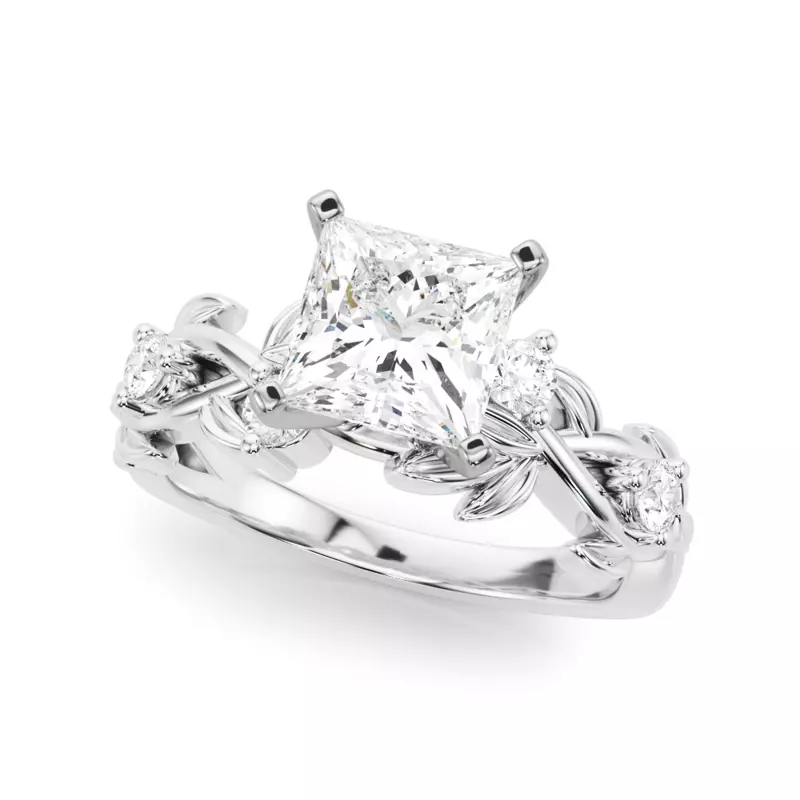 Flamenco Twisted Vine And Leaf Engagement Ring With 1 Carat princess Lab Diamond