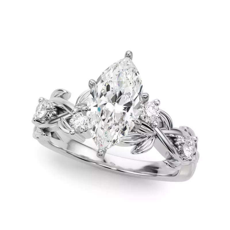 Flamenco Twisted Vine And Leaf Engagement Ring With 2 Carat marquise Lab Diamond