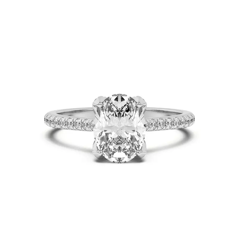 Marian Diamond-Encrusted Tulip Prong Pavé Engagement Ring With 1 Carat oval Lab Diamond