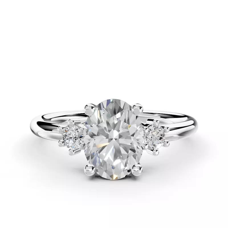 Marni Petite Three-Stone Engagement Ring With 3 Carat oval Lab Diamond