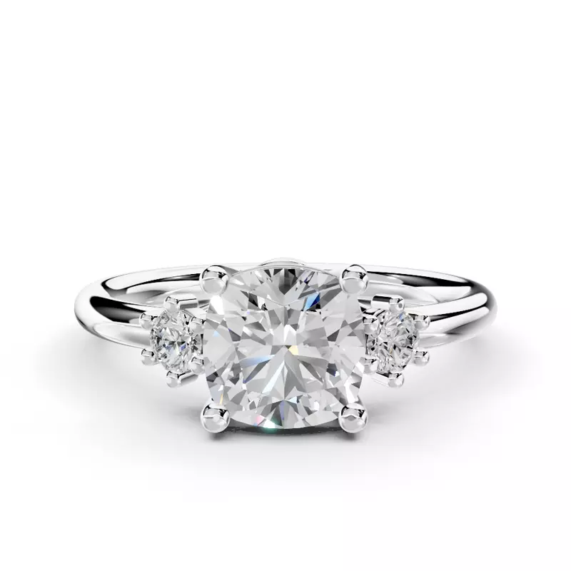Marni Petite Three-Stone Engagement Ring With 2 Carat cushion Lab Diamond