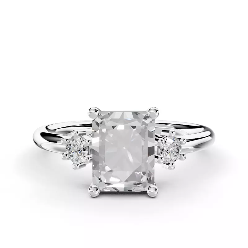 Marni Petite Three-Stone Engagement Ring With 3 Carat radiant Lab Diamond