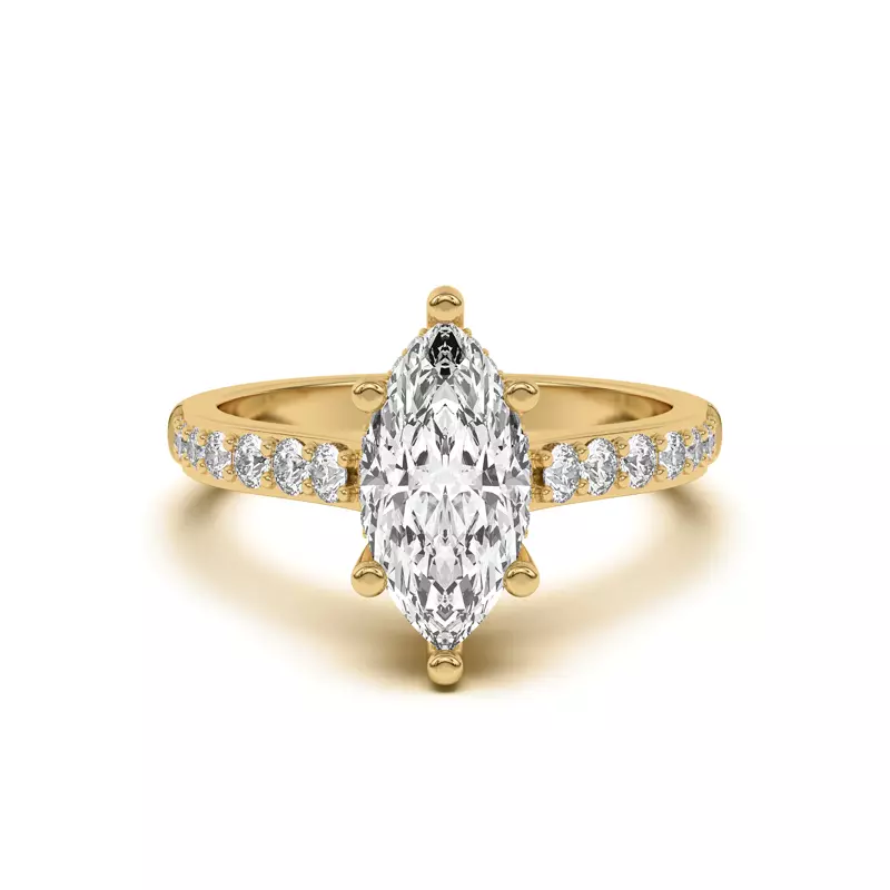 Rita Graduated Pavé Engagement Ring With Hidden Halo With 2 Carat marquise Lab Diamond