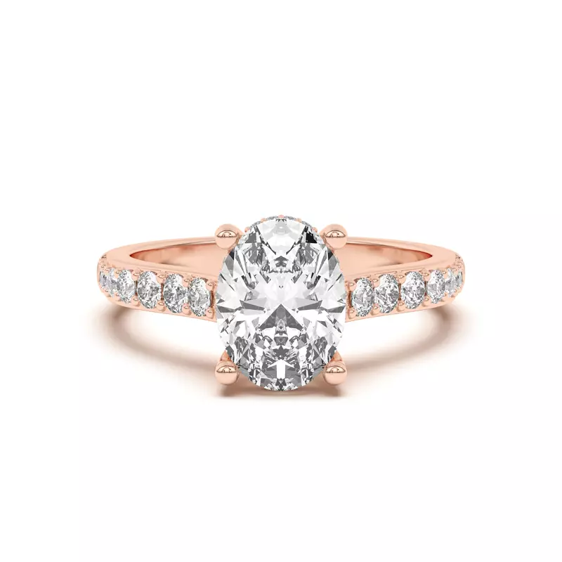 Rita Graduated Pavé Engagement Ring With Hidden Halo With 5 Carat oval Lab Diamond