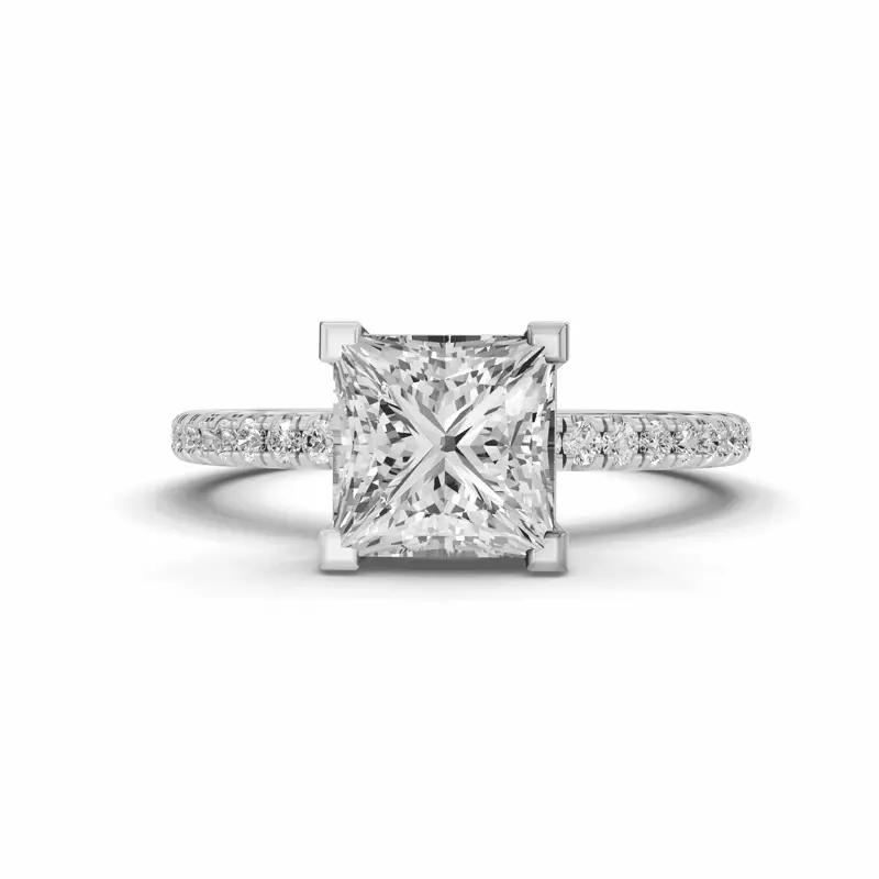 Tradition Lab Pavé Engagement Ring (.15ct tw.) With 4 Carat princess Lab Diamond