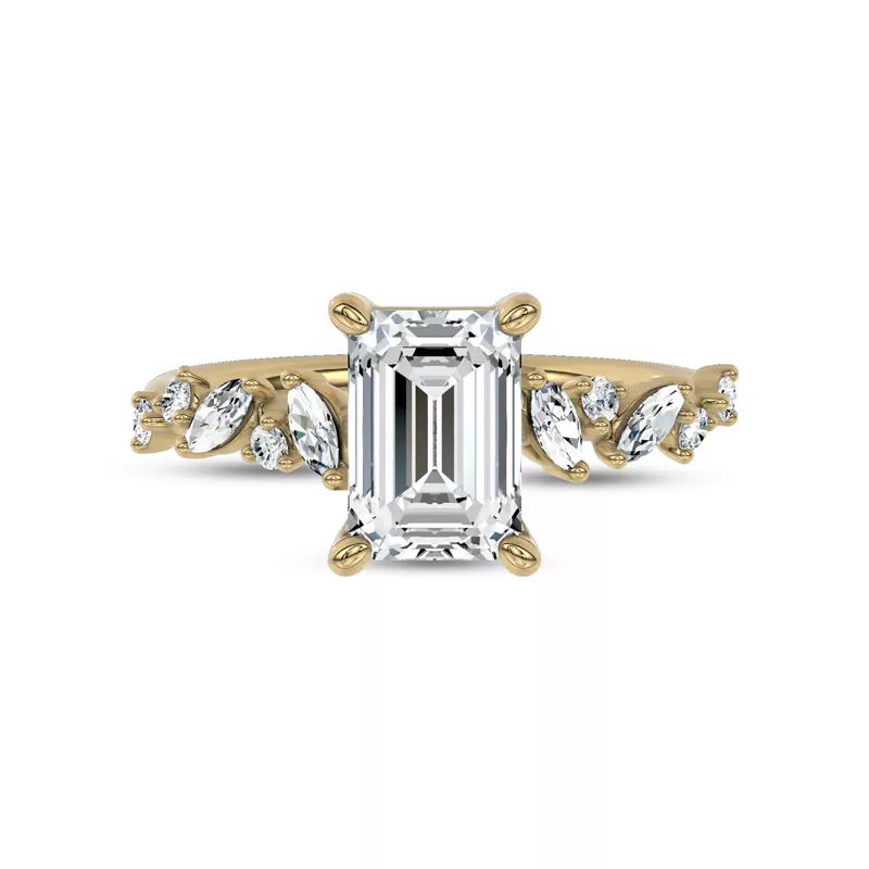 Hayley Scattered Diamond Engagement Ring With 2 Carat emerald Lab Diamond