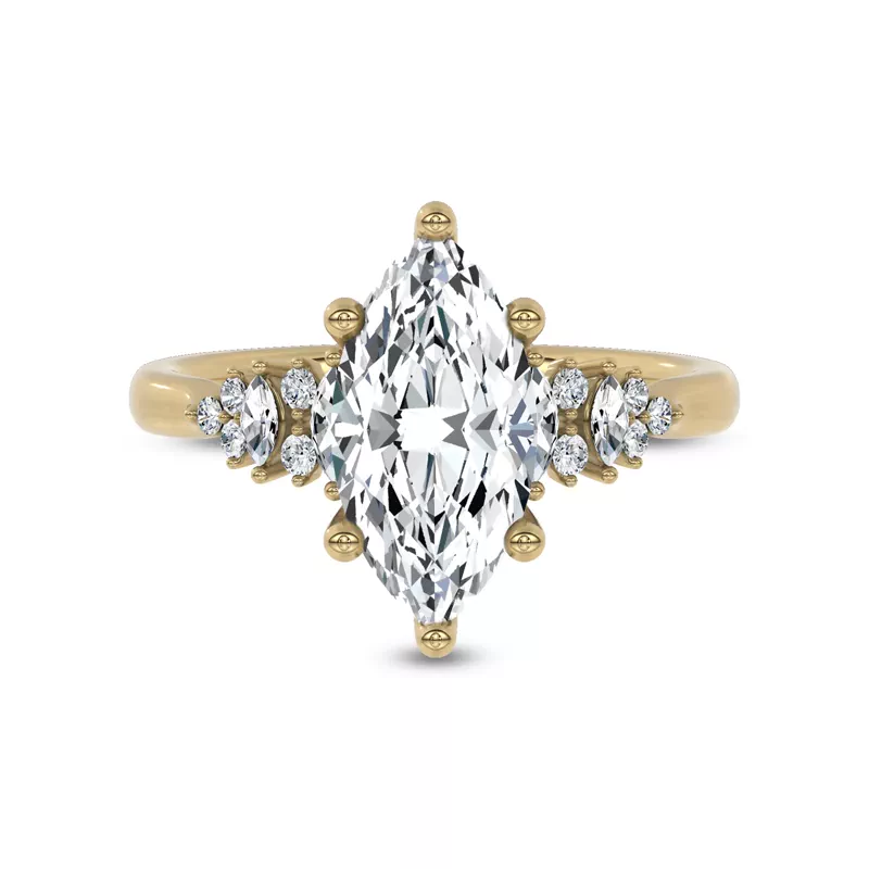 Almita Marquise And Round Diamond Engagement Ring With 2 Carat marquise Lab Diamond