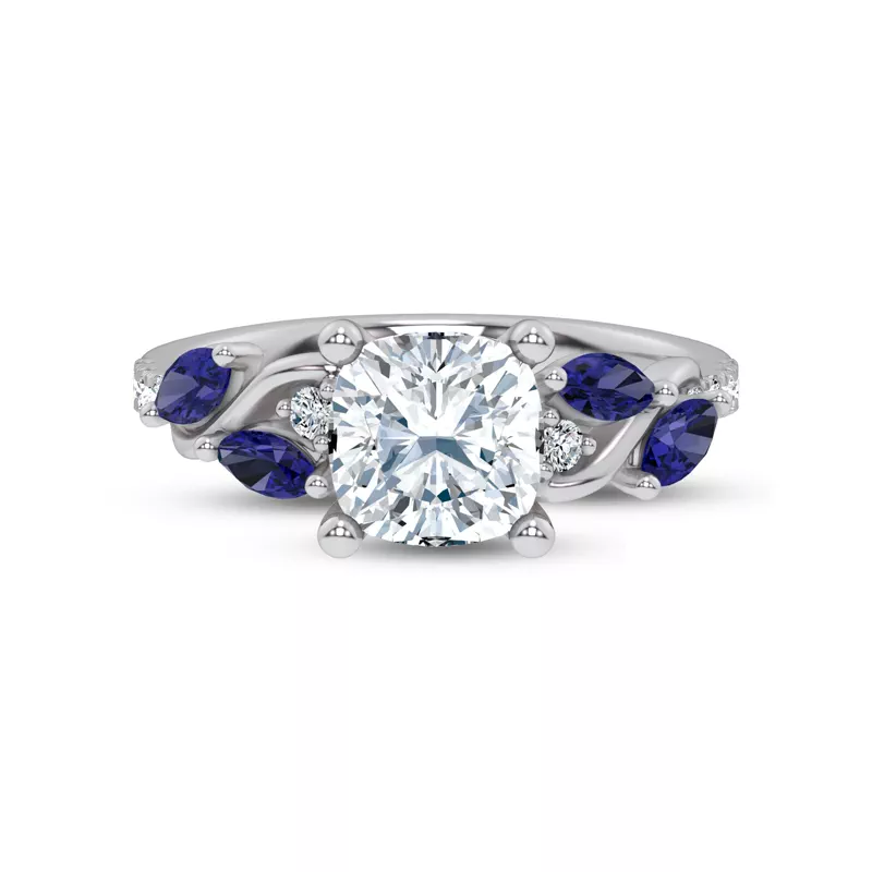 Hayden Curved Vine Sapphire And Diamond Engagement Ring With 2 Carat cushion Lab Diamond
