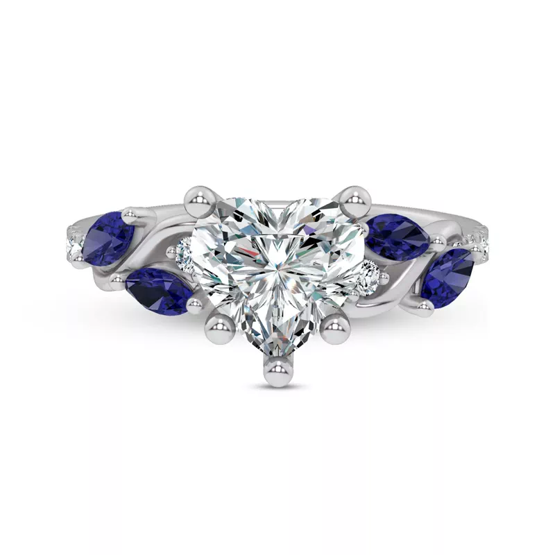 Hayden Curved Vine Sapphire And Diamond Engagement Ring With 2.02 Carat heart Lab Diamond