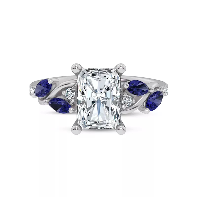 Hayden Curved Vine Sapphire And Diamond Engagement Ring With 3 Carat radiant Lab Diamond