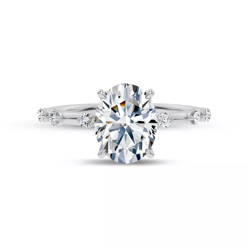 Starlight Spaced Diamond Engagement Ring With 2 Carat oval Lab Diamond