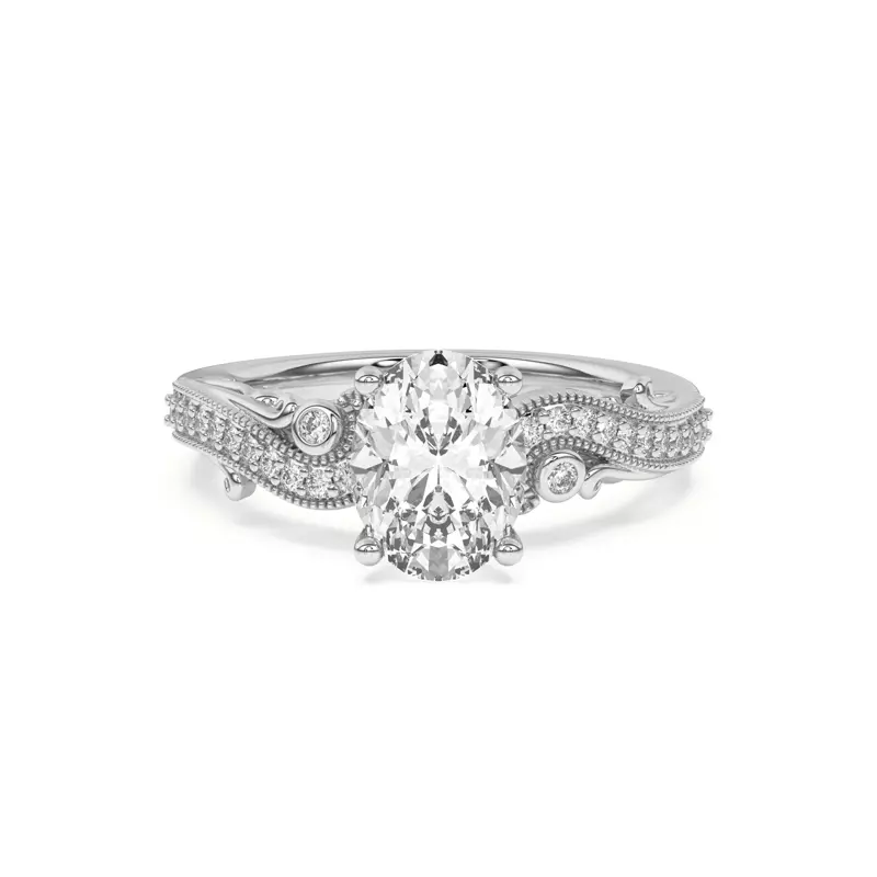 Oasis Filigree Pavé Engagement Ring With 2 Carat oval Lab Diamond