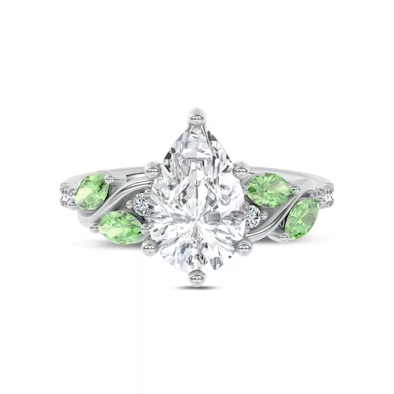 Hayden Curved Vine Tsavorite And Diamond Engagement Ring With 1 Carat pear Lab Diamond