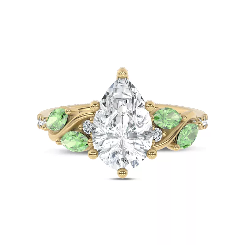 Hayden Curved Vine Tsavorite And Diamond Engagement Ring With 3 Carat pear Lab Diamond