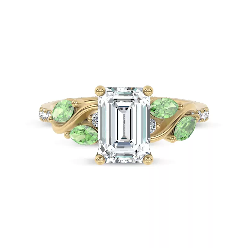 Hayden Curved Vine Tsavorite And Diamond Engagement Ring With 6.01 Carat emerald Lab Diamond