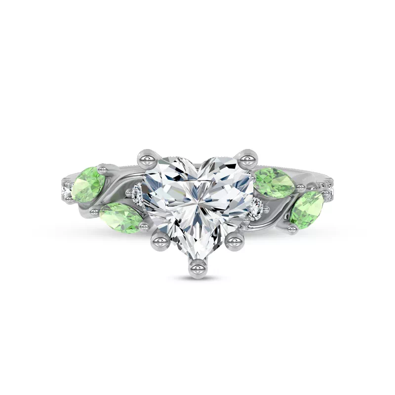 Hayden Curved Vine Tsavorite And Diamond Engagement Ring With 1 Carat heart Lab Diamond