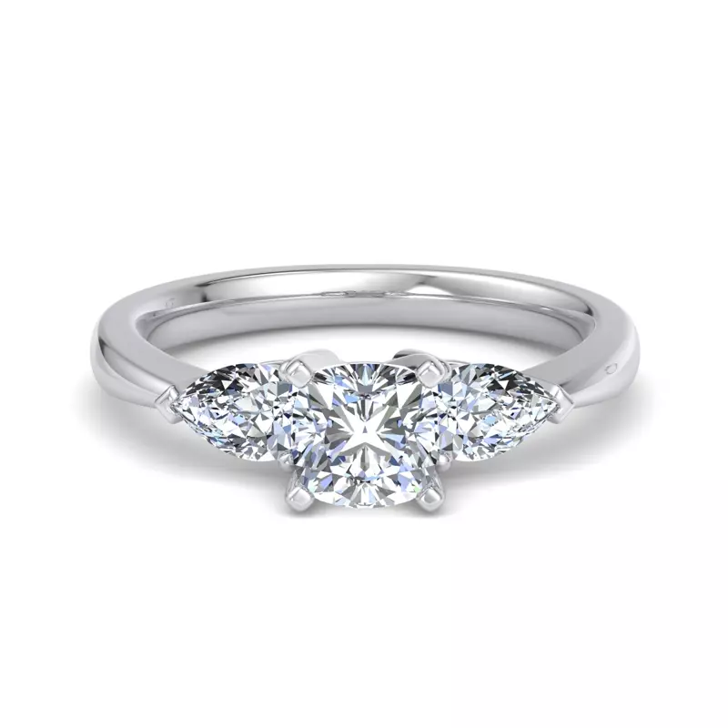 Madison Three-Stone Lab Pear Engagement Ring With 2 Carat cushion Lab Diamond