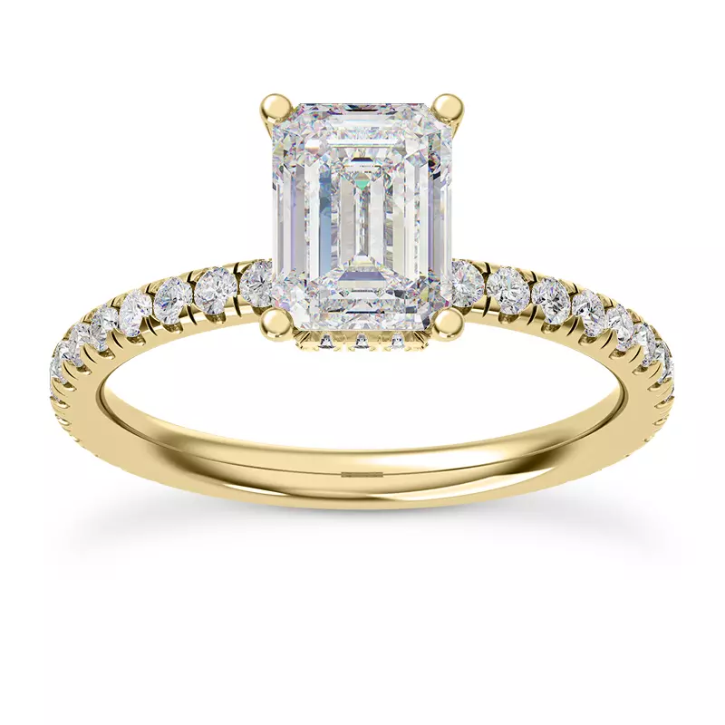 Faye Double Hidden Halo Pave Lab Engagement Ring With 2 Carat emerald Lab Diamond