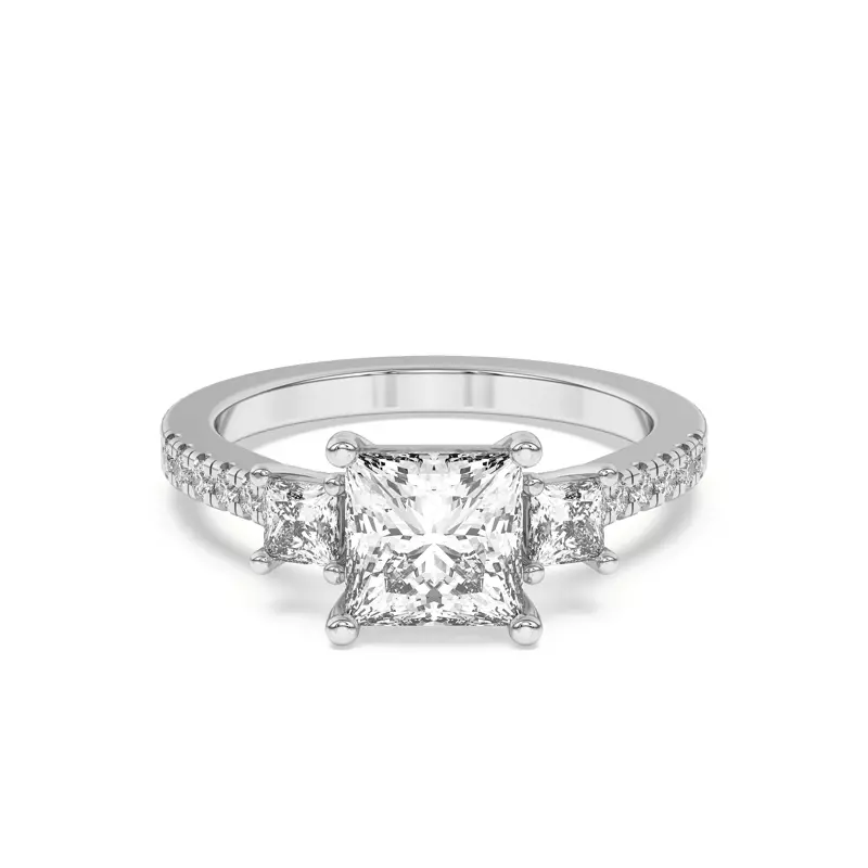 Tria Pavé Princess Lab Accent Three-Stone Ring With 1 Carat princess Lab Diamond