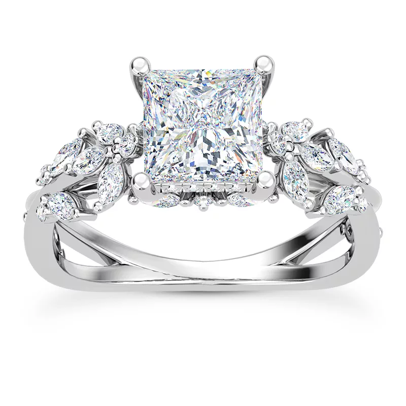 Butterfly And Bee Vine Twist Lab Engagement Ring With 2 Carat princess Lab Diamond