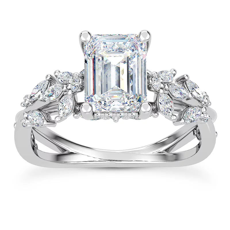 Butterfly And Bee Vine Twist Lab Engagement Ring With 4.01 Carat emerald Lab Diamond