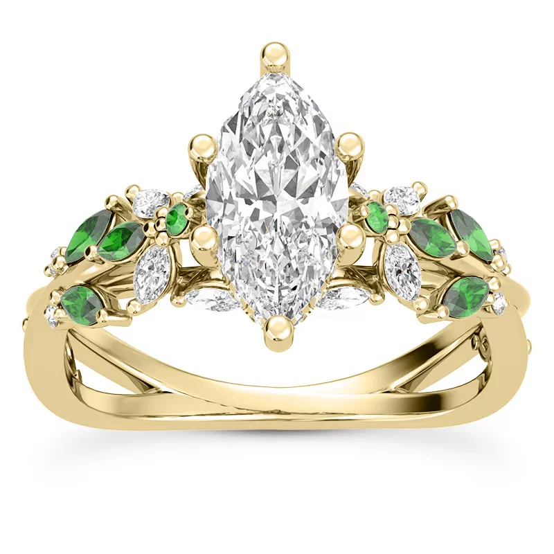 Butterfly And Bee Vine Twist Lab Emerald Engagement Ring With 3.02 Carat marquise Lab Diamond